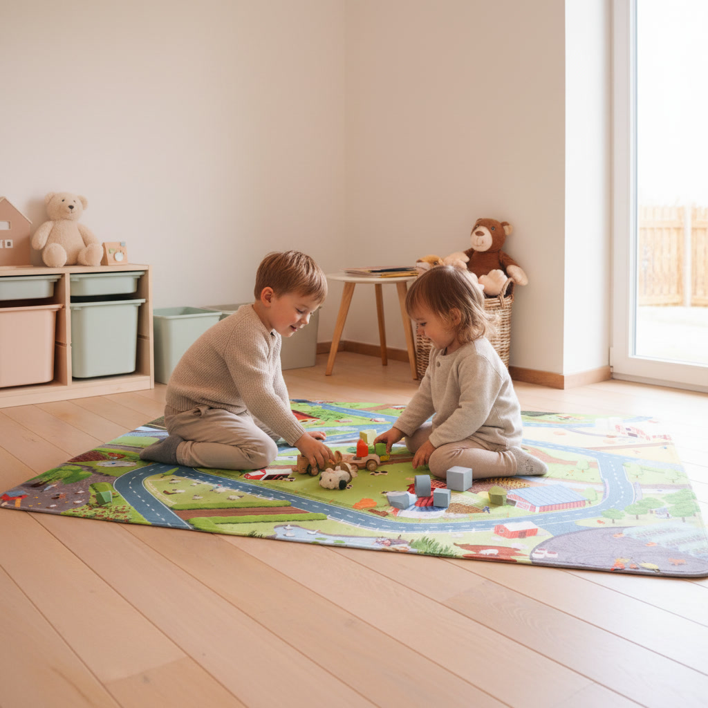 Ontdek het uitgebreide gamma auto speelmatten en andere speelse designs die comfort en fantasie combineren.