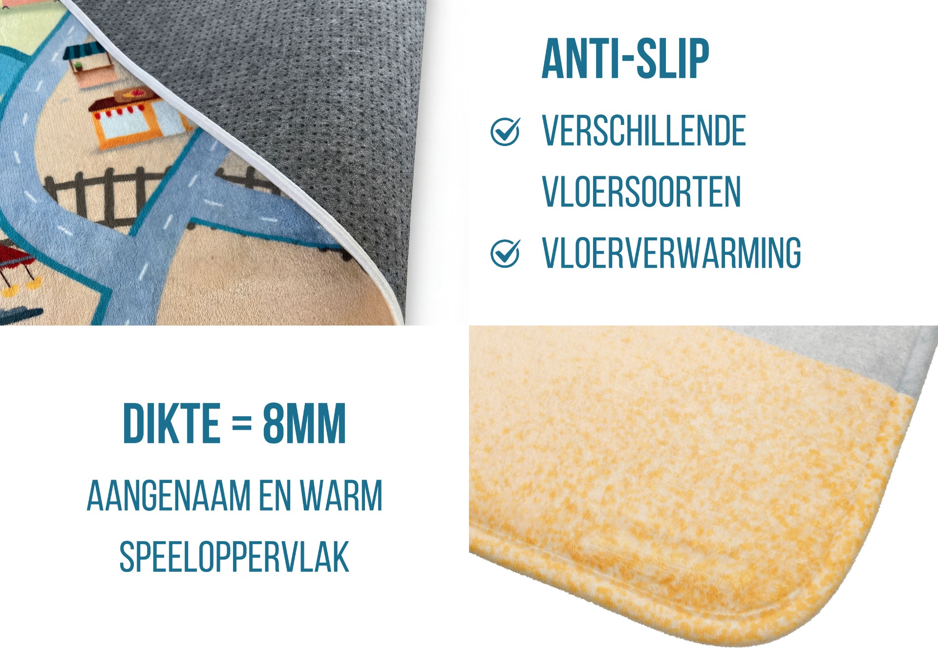 - Anti-slip achterkant (met veel kleine puntjes)