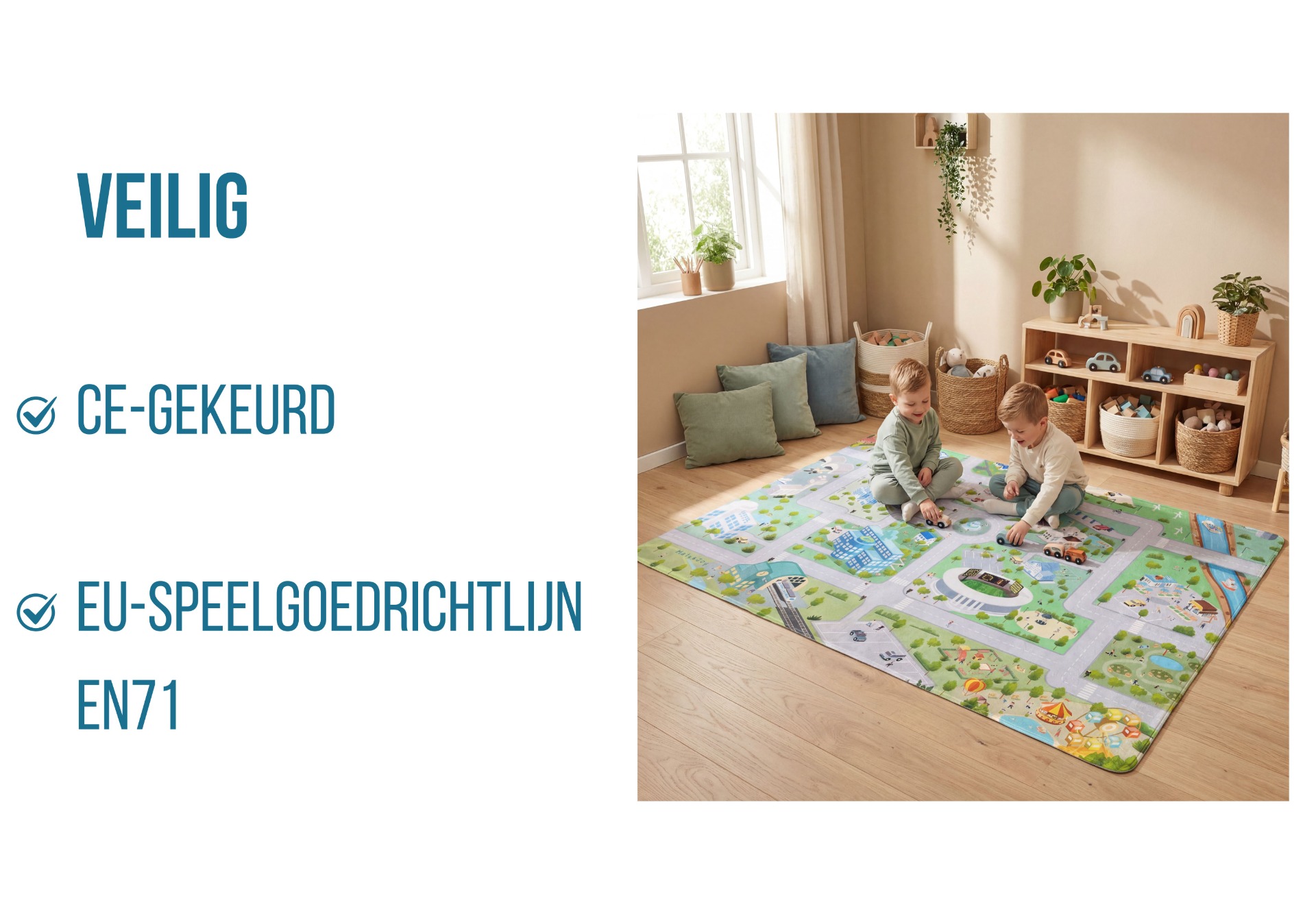 - Voldoet aan alle kwaliteitsvereisten inzake veiligheid voor kinderen