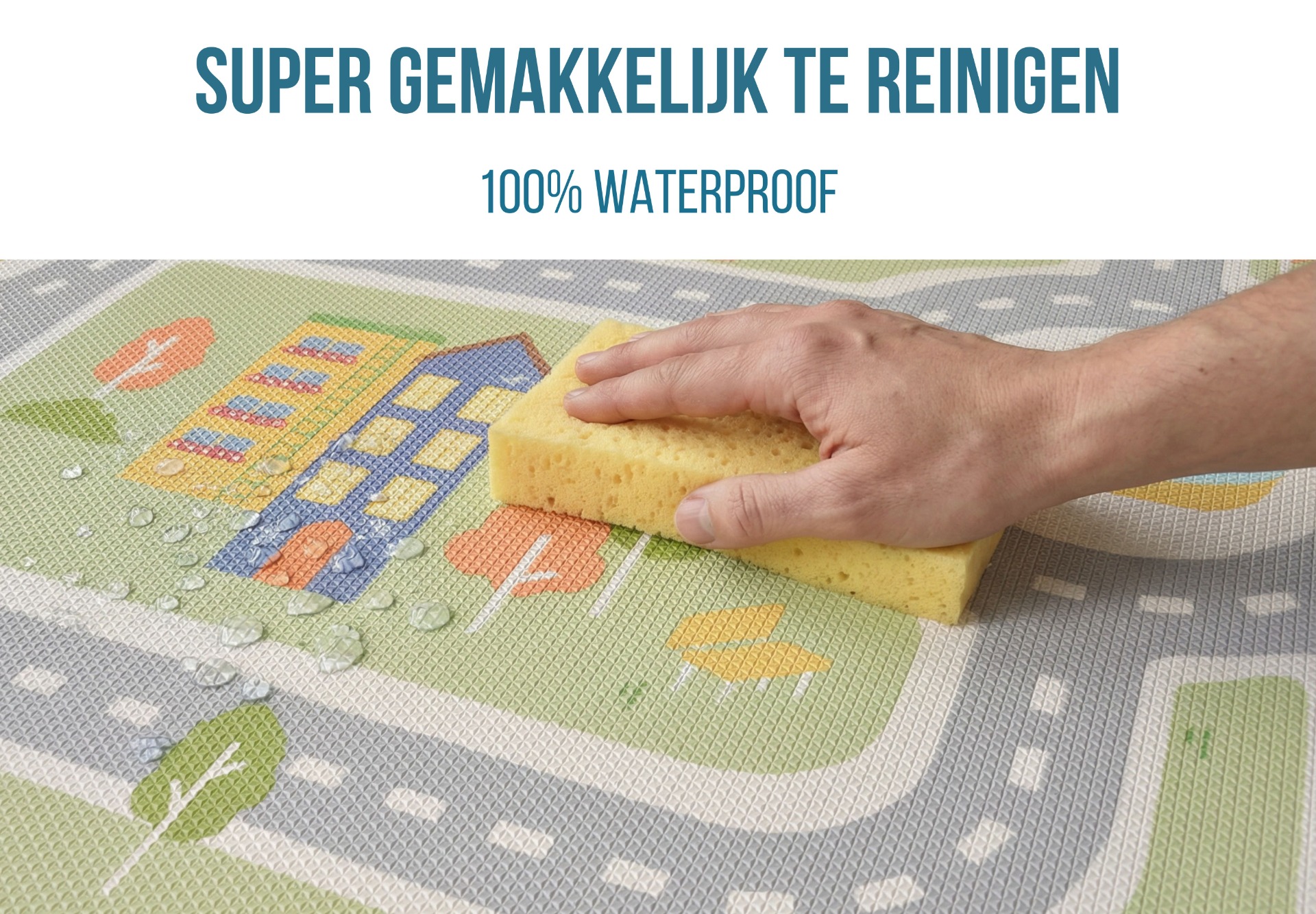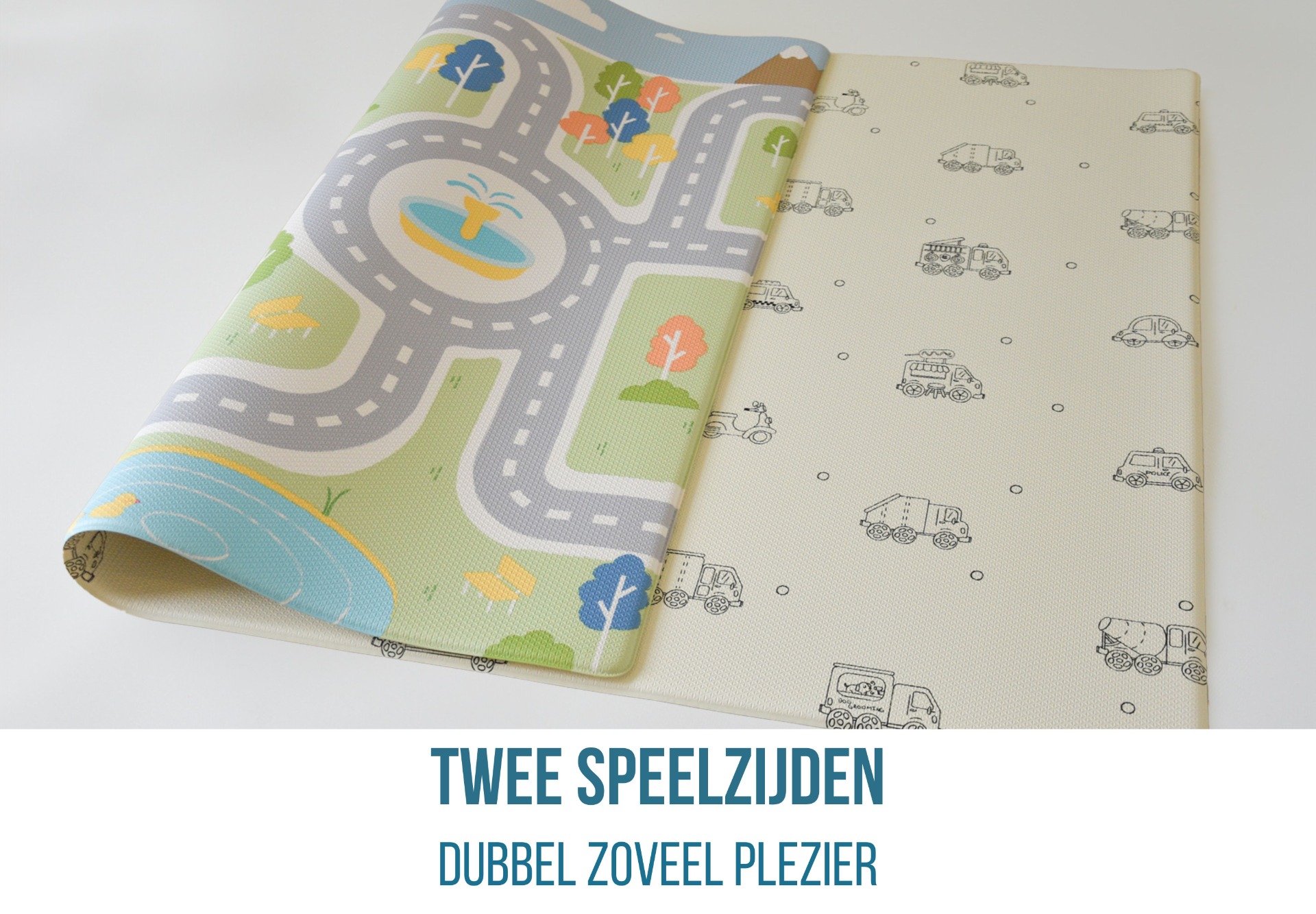 Terug op voorraad! Ons super leuk PVC-foam autobaan tapijt. Deze extra grote auto speelmat (140x200cm) heeft twee bruikbare zijden en zorgt dus voor dubbel zoveel speelplezier!