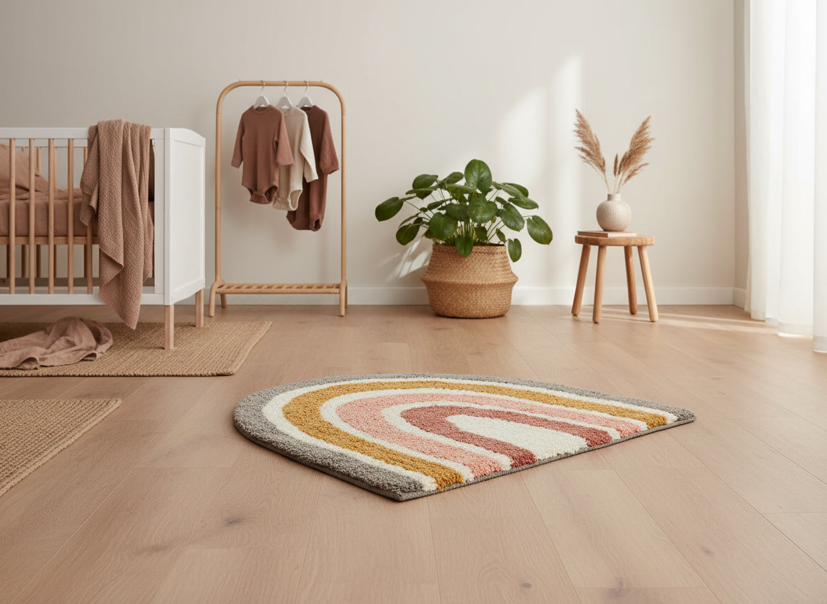 Apportez de la chaleur et une touche de fantaisie à la chambre d'enfant avec ce tapis arc-en-ciel tout doux. Sa forme arrondie et ses teintes naturelles créent une atmosphère apaisante dans la chambre ou le coin jeu. Grâce à son format compact de 70 × 100 cm, ce tapis est idéal à côté du lit ou près de la table à langer. Un accent à la fois élégant et adapté aux enfants, qui apporte instantanément de la convivialité.