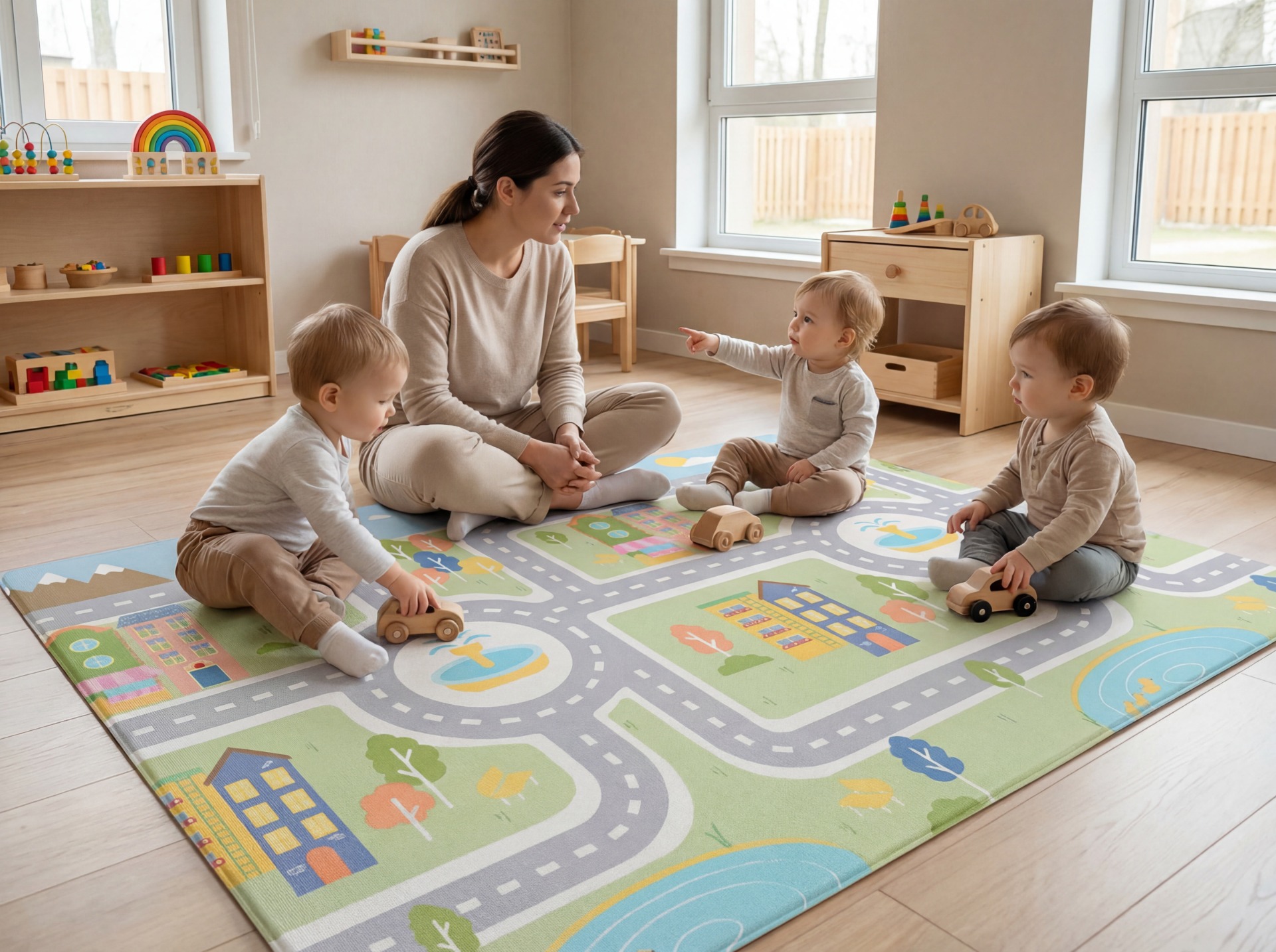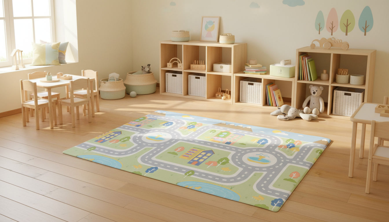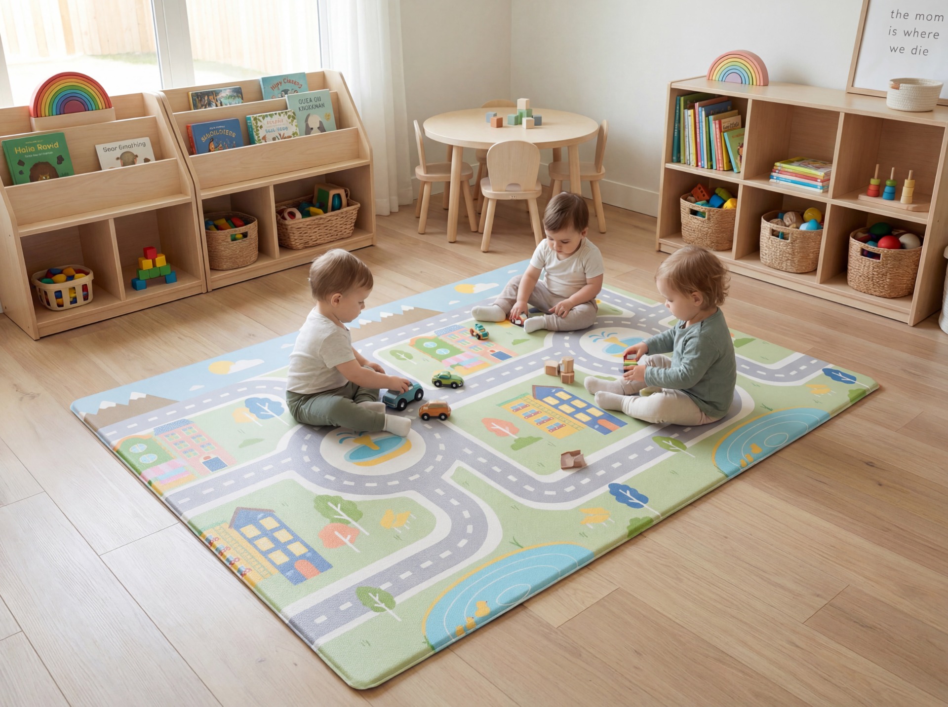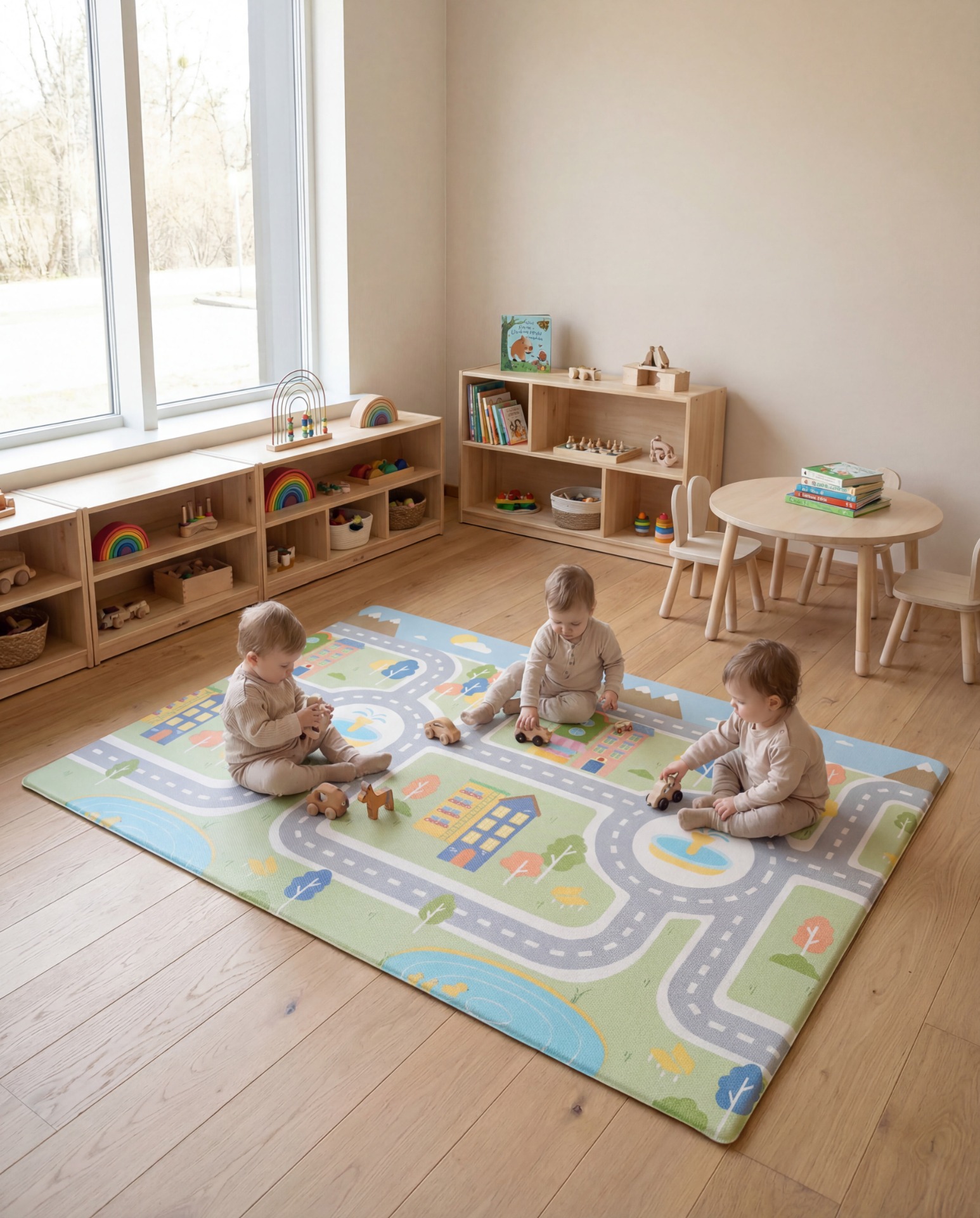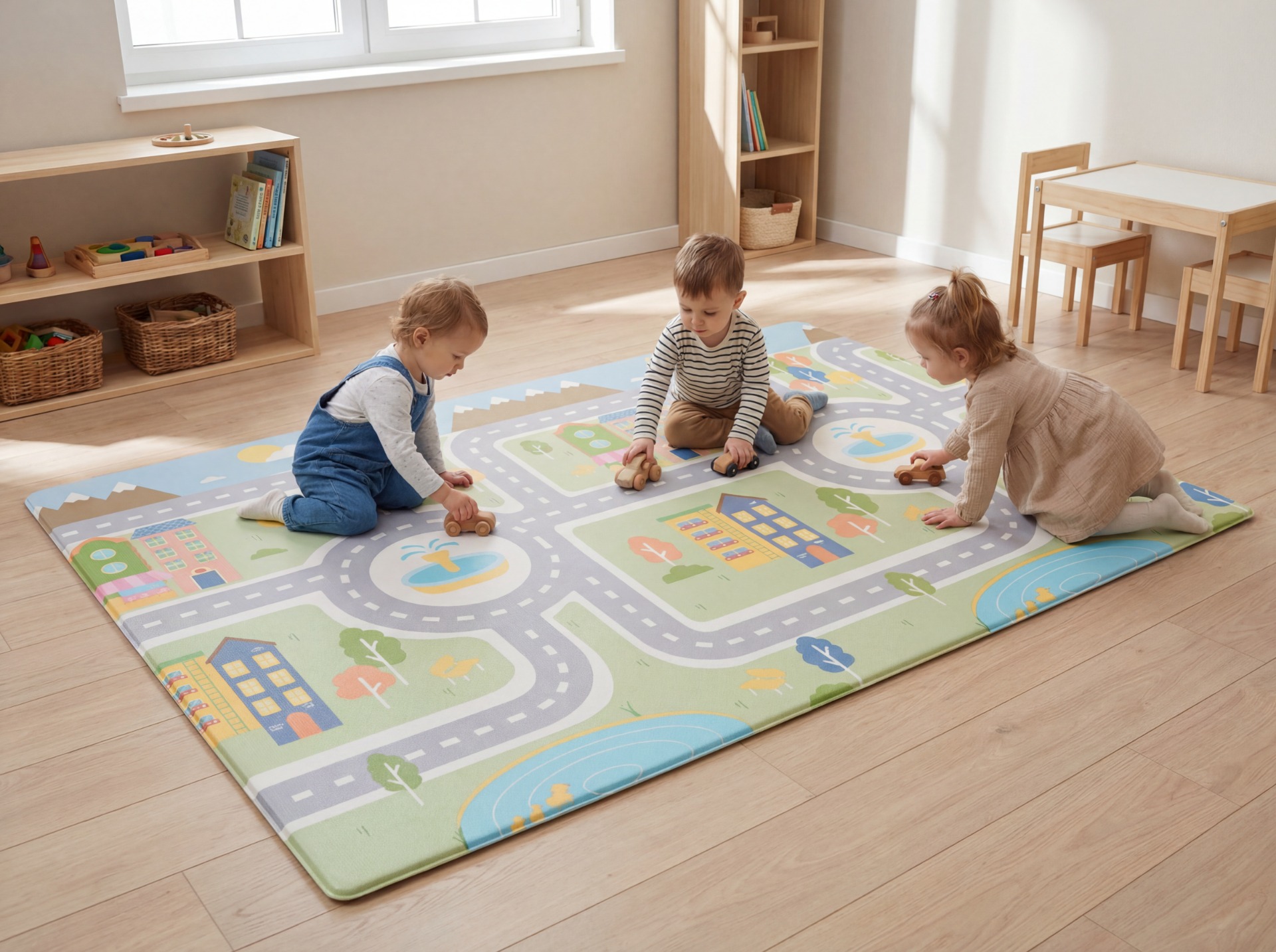 Le nouveau venu dans notre gamme : un tapis de circulation super amusant en mousse PVC. Ce tapis XL (140x200cm) a deux côtés utilisables et offre donc deux fois plus de plaisir !