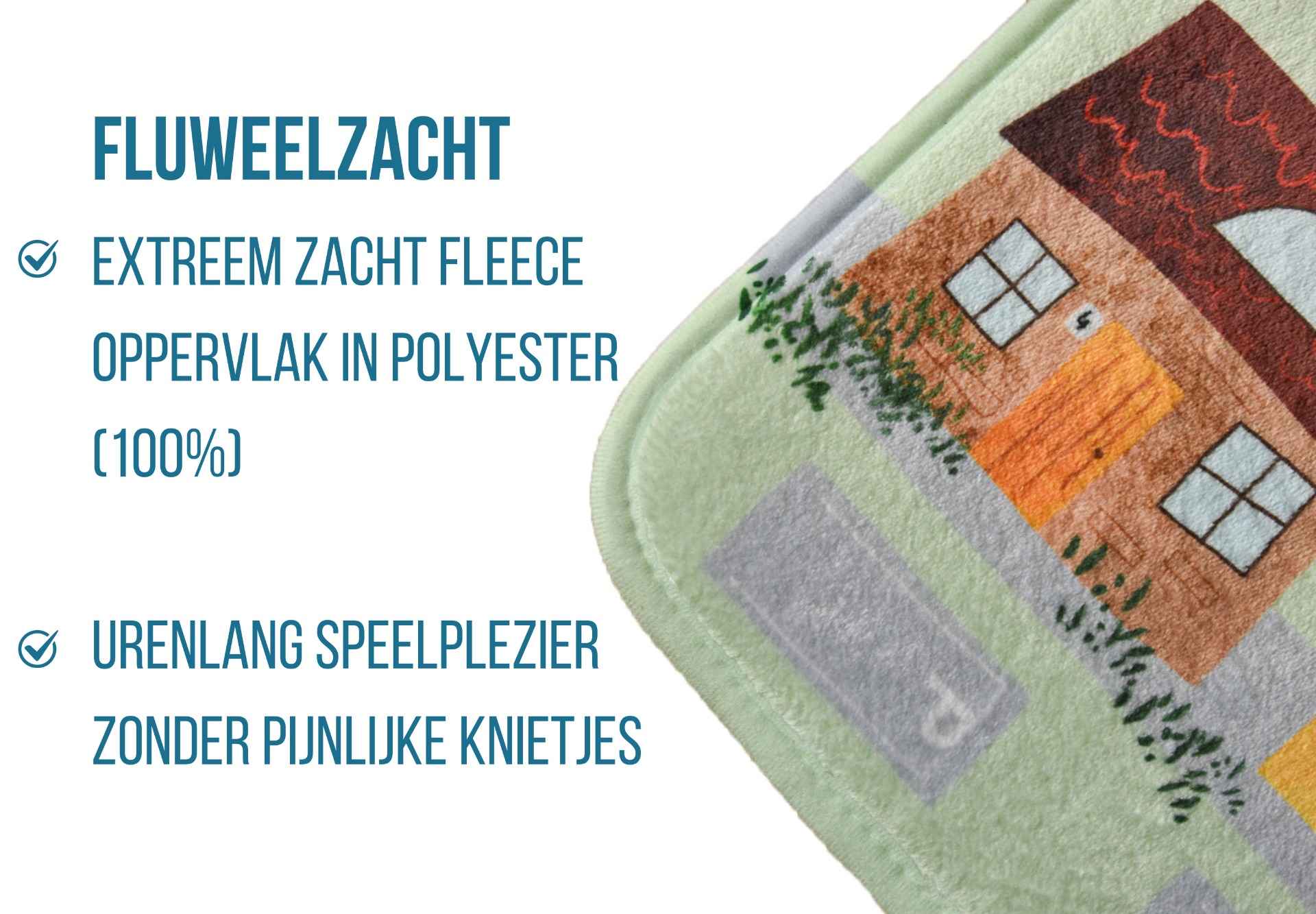 "Een zalig speeltapijt! Mooie kwaliteit. Verschuift niet, zachte kleuren, voelt als fleece aan."